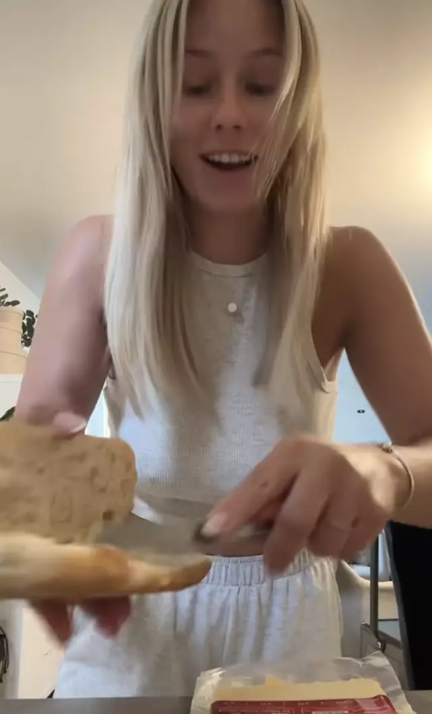 Amanda, who now lives in Paris, posted a video calling it “weird” that French people butter their sandwiches. As she prepared a ham and cheese baguette, she explained that Americans often reach for mayo or mustard instead. To her, spreading cold butter felt strange and a little funny.