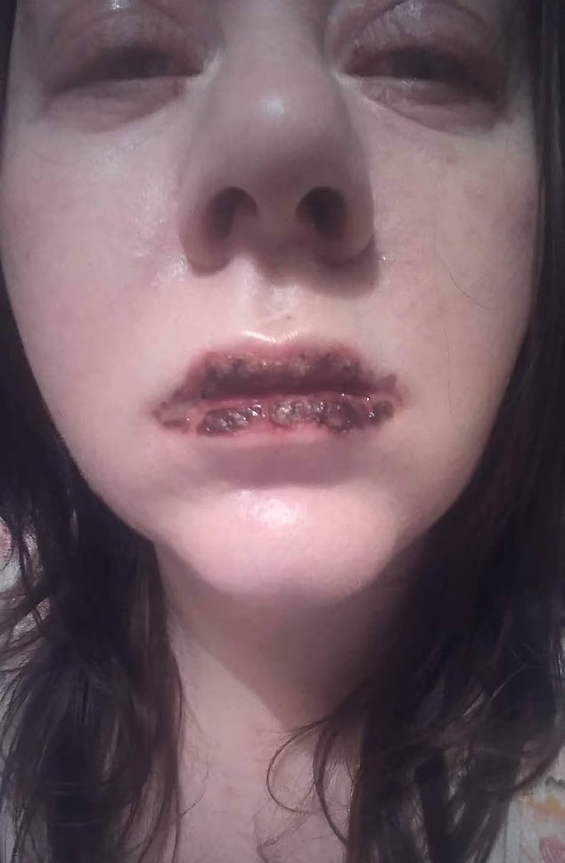 Jo spent weeks in a burns unit to treat her injuries. She lost large sections of skin from her lips and cheeks. The condition damaged her vision and caused her gums to recede. “Large chunks of skin were falling off on my lips and mouth,” she said of the recovery. She now suffers from dental decay and permanent eye swelling.