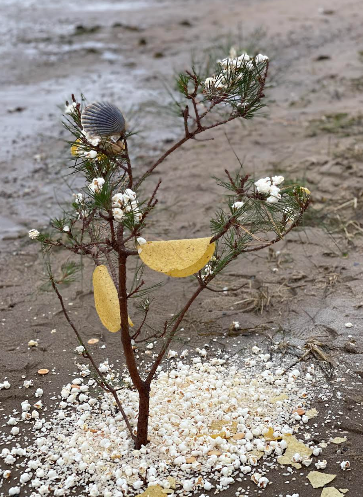 Despite initial discomfort, the day unfolded differently. The family trudged to the beach in cold weather, placed the branch in the sand, and let the kids arrange crackers and pretzels like ornaments. Instead of arguing, the siblings laughed, surprised by the calmer mood.