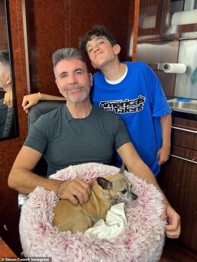 Simon Cowell, 65, delighted fans by posting a rare photo of his 11-year-old son, Eric. The pair were seen backstage at America’s Got Talent, joined by the family’s chihuahua, Daisy.