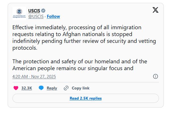 In response, US immigration officials paused all requests from Afghan nationals while security reviews take place. Trump called current migration policies a major national security threat and promised a full review of past entries from Afghanistan. The announcement sparked strong reactions across the country.