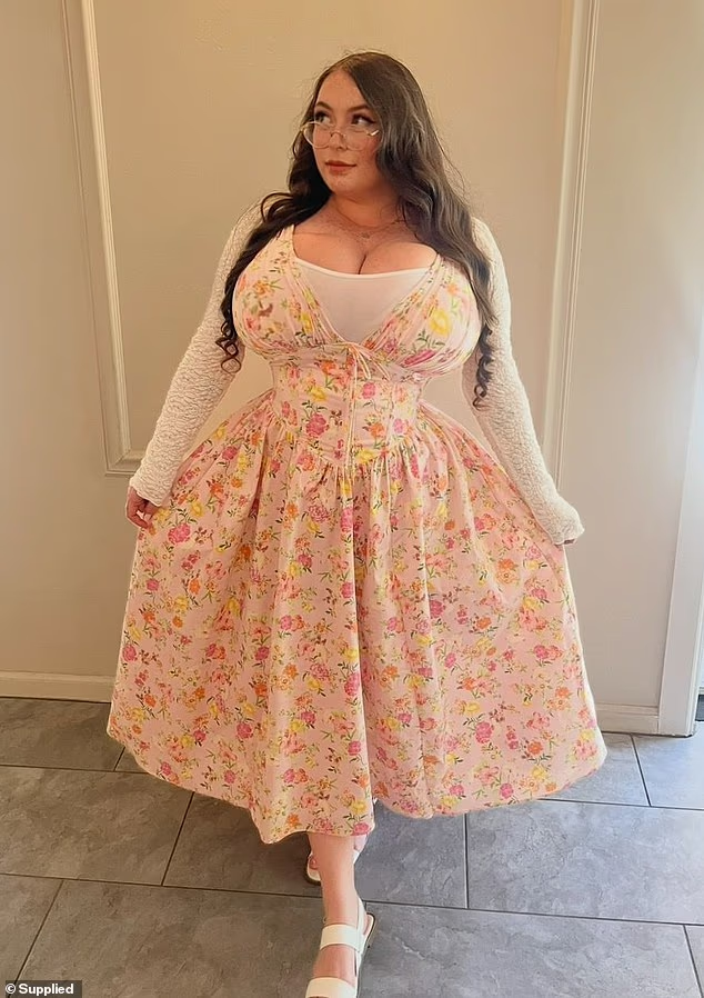 The 25-year-old has macromastia, a condition that causes her breasts to grow over time. She says this makes it hard to find clothes that fully cover her chest.